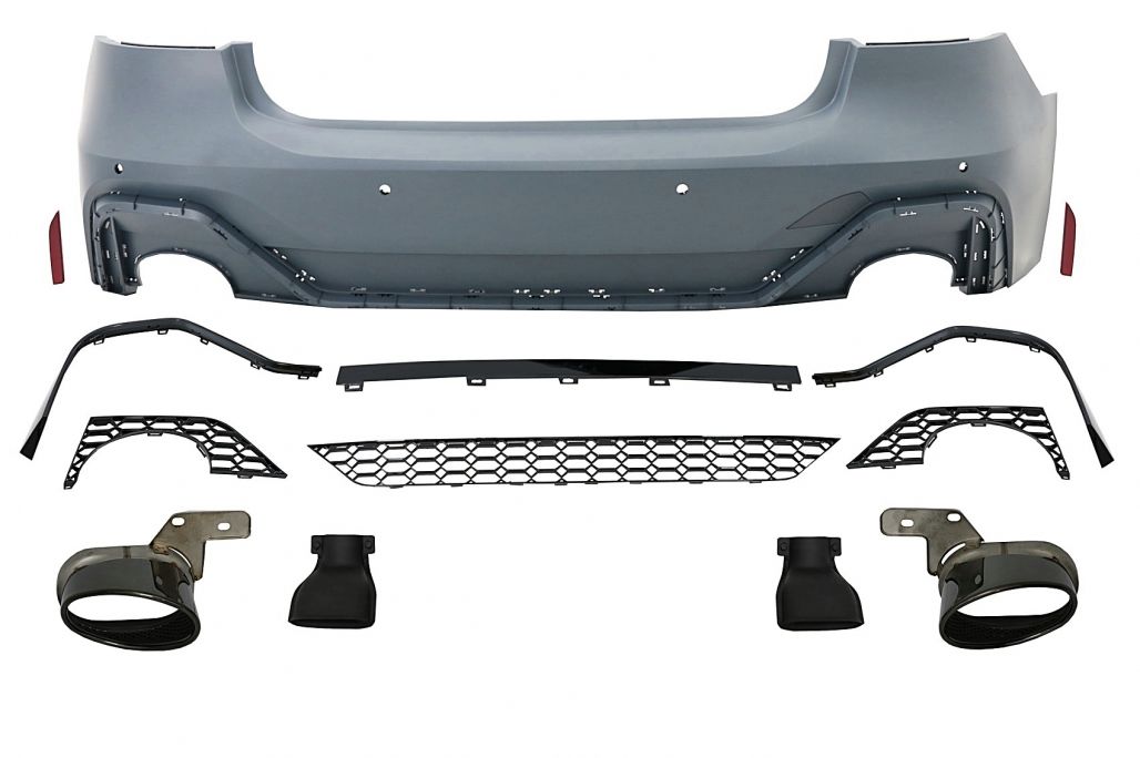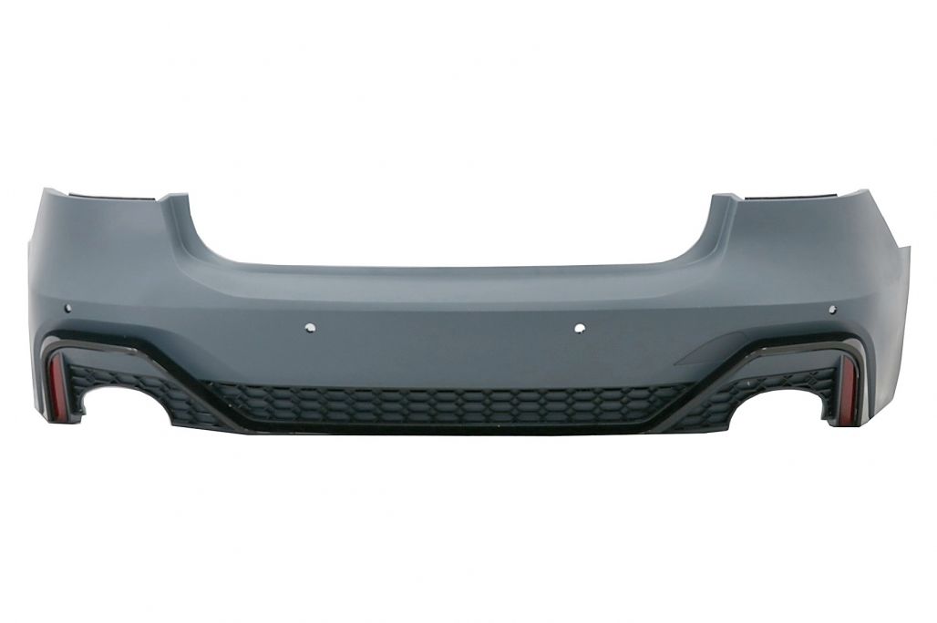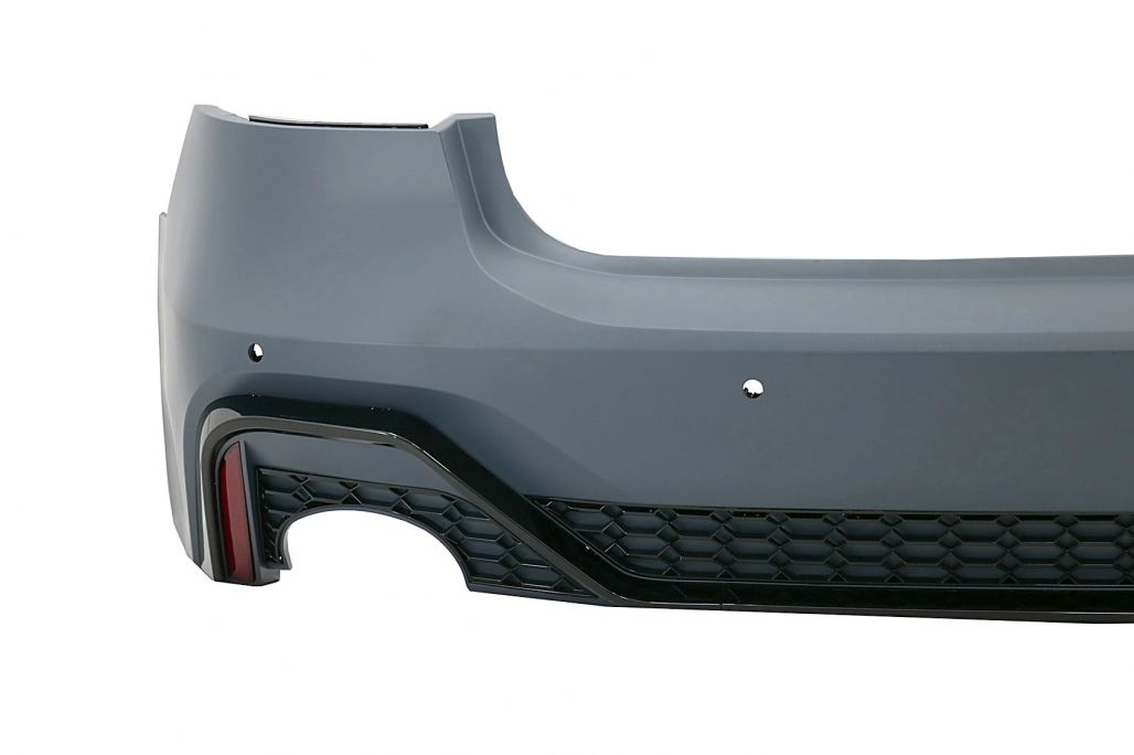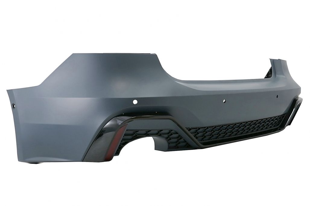 Galinis bamperis su juodos spalvos difuzoriumi su dviem vieno išmetimo duslintuvais, vilkimo kablio dangteliu ir raudonais šoniniais atšvaitais.
