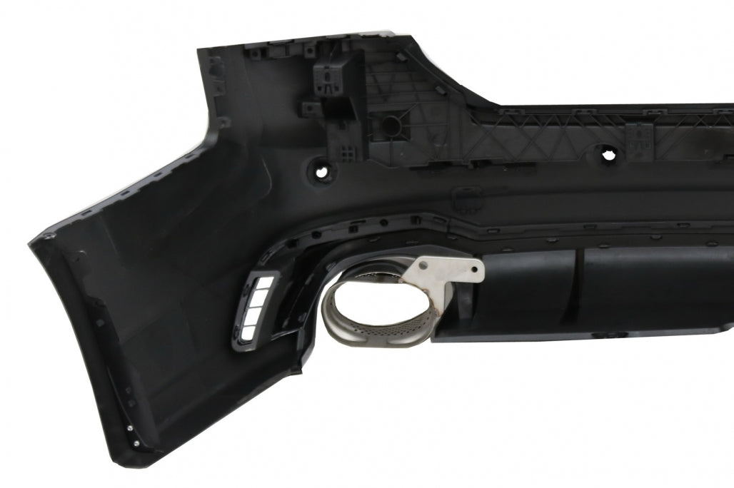 Galinis bamperis su „Quattro RS Look“ juodos spalvos difuzoriumi su dviem vieno išmetimo duslintuvais, vilkimo kablio dangteliu ir raudonais šoniniais atšvaitais