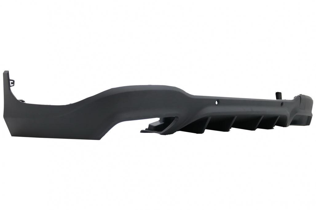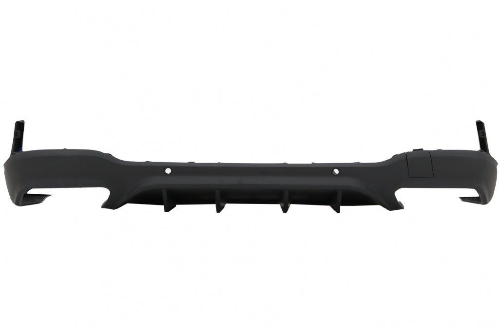 Galinio bamperio difuzorius su dvigubo oro išleidimo angų difuzoriumi, parkavimo jutiklių (PDC) laikikliais.